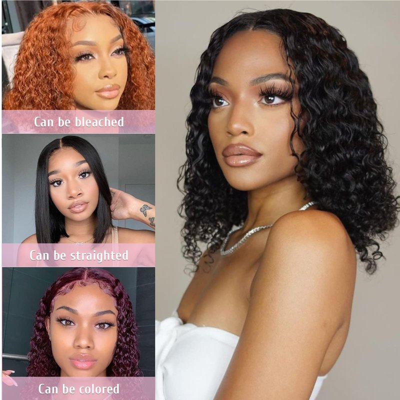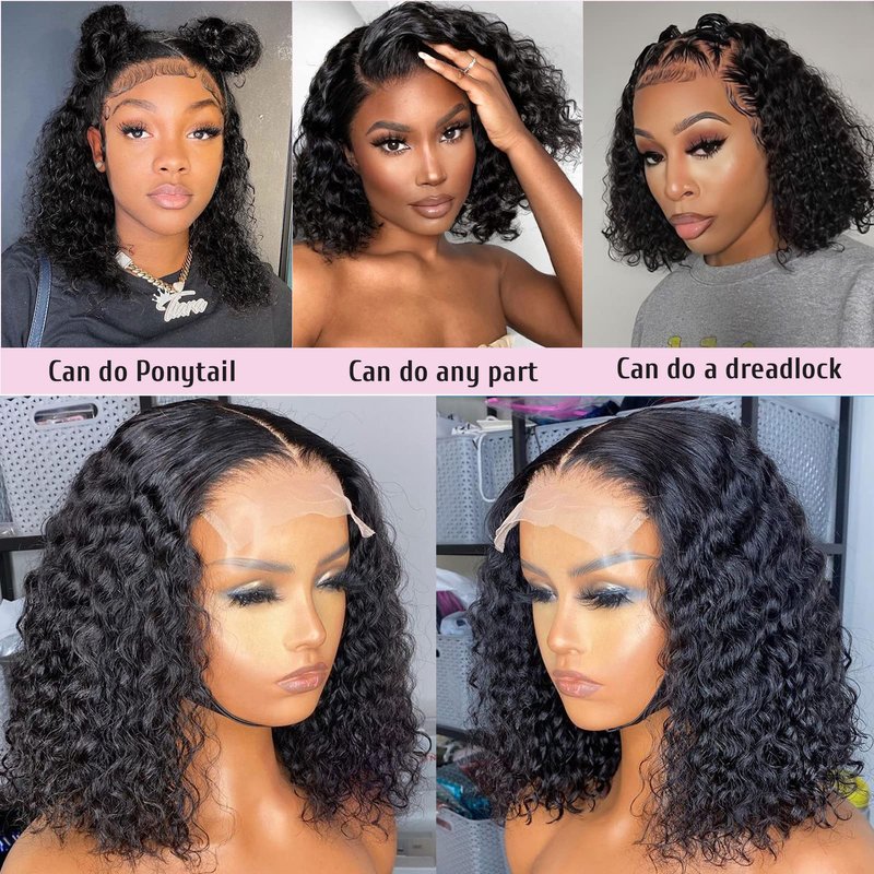 - [Bob Human Hair Wigs Material] Our short bob lace front wig was made by 100% unprocessed Brazilian Virgin Human Hair which collected from young girls. So our water wave bob wigs for black women can be bleached, dyed, curly and so on. They are no shedding, no tangle, soft and healthy.