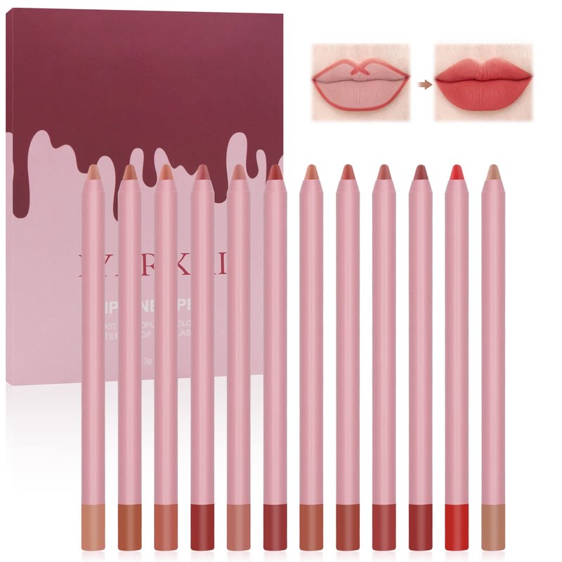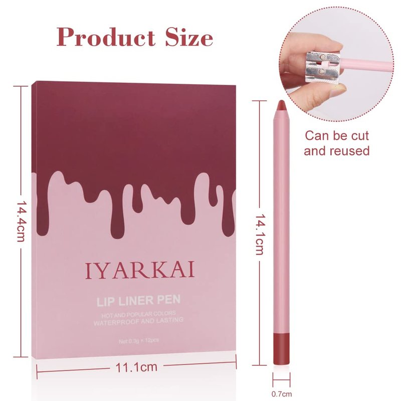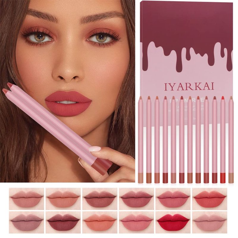 IYARKAI Matte Lip Liner Pencil Set, 12 Colors Smooth Lip Liner Set, Matte Velvet Lipstick Pen, Smudge-proof and Waterproof, Long Lasting Fade Resistant, for Daily Travel Party Work