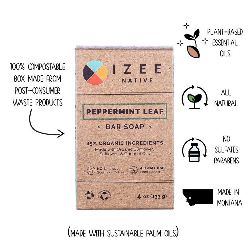 Izee Native Peppermint Leaf Botanical Bar Soap 1 count 4oz Peppermint Leaf Bar Soap | Earth-Safe Biodegradable Bar Soap Made in USA With Natural and Organic Ingredients