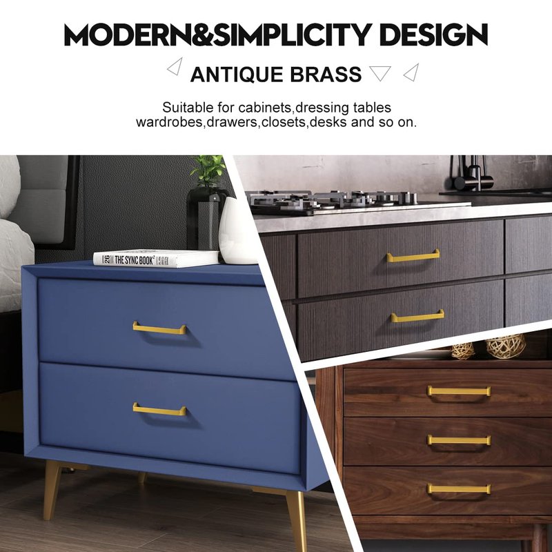 - SAFETY GOLD CABINET HANDLES-In order to prevent children from colliding with the edge of the brushed gold drawer handles during play, we adopt the curved edge processing technology to make the product more beautiful and safer.