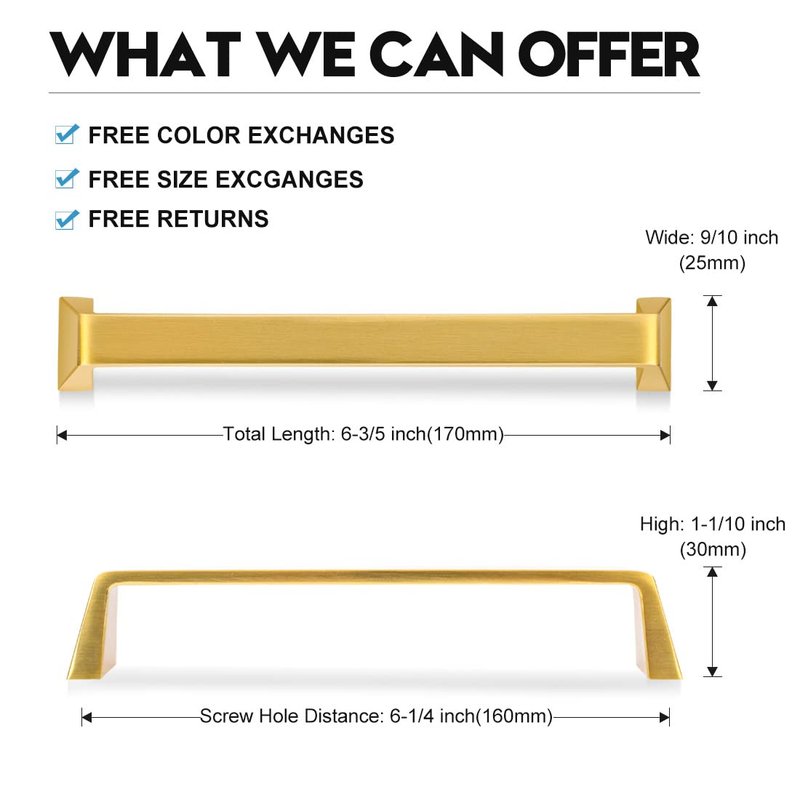 - SOLID ZINC GOLD DRAWER HANDLES -The cabinet pulls and knobs are made of expensive solid zinc material, gold drawer pulls 6.3 inch is so heavy( Weighing up to 119g/PCS).
