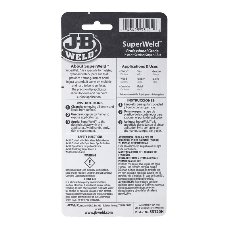 - Super Strong: Superweld Is A Specially Formulated Cyanoacrylate Super Glue That Provides A Strong, Instant Bond In Just Seconds. It Works On Multiple And Hard To Bond Surfaces