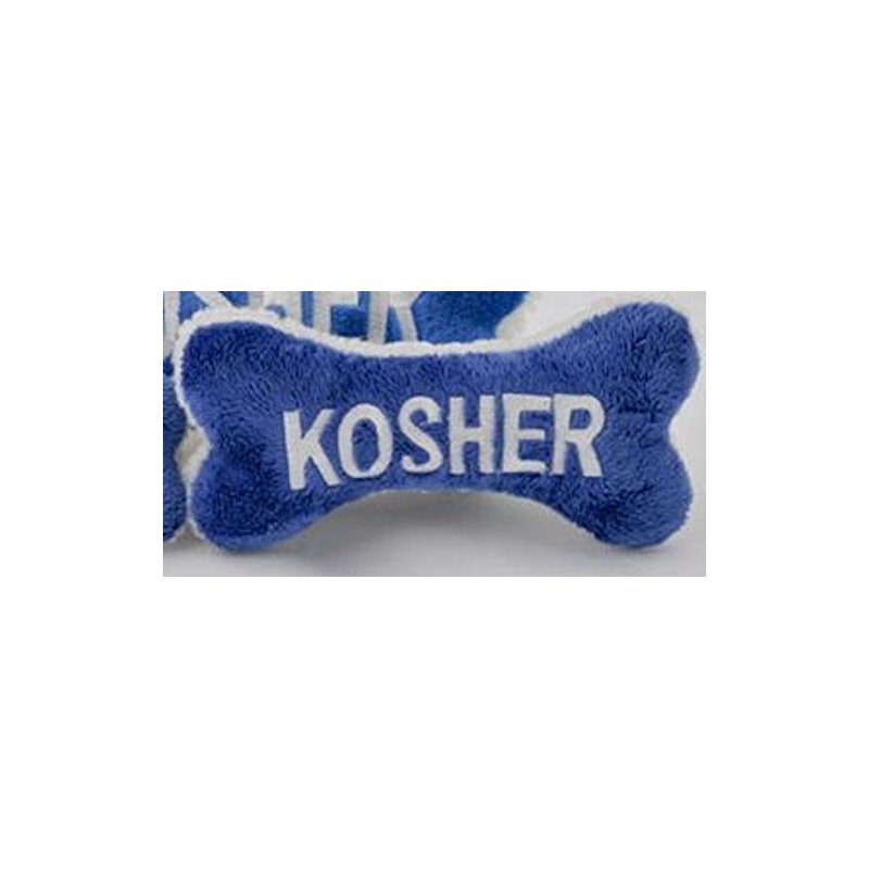 For your favorite Jewish dog, his very own plush Chewish treat! Large plush bone for your dog to chew on with Kosher written on the front. Squeaks when squeezed. 7"