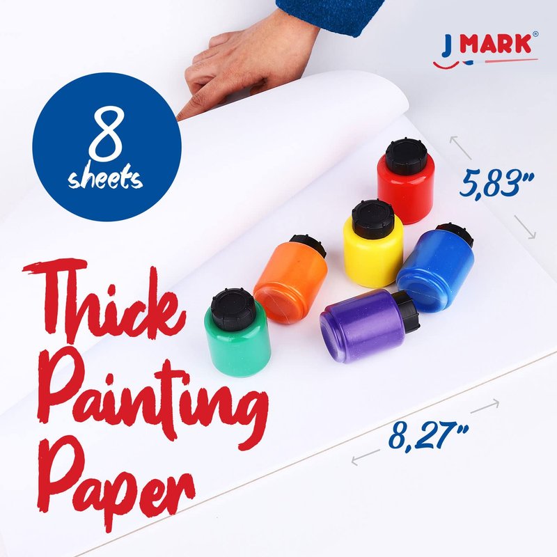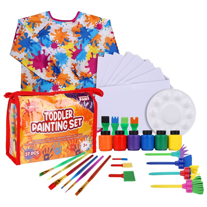 - All-Inclusive Toddler Art Supplies – J Mark exclusive 38-Piece toddler paint set has everything you need to create beautiful masterpieces including a 8-sheet Toddler Finger Paint Paper, 6 Washable tempera paints (2 oz/60 mL),1 Colored Paint Smock; 6 toddler art set paint brushes, 15 painting tools and a 1 palette. Ideal toddler arts and crafts and toddler art set, kids finger paints, DIY paint for toddler activities, kids paint set projects and more