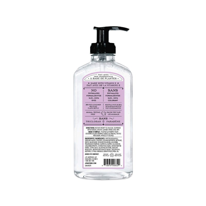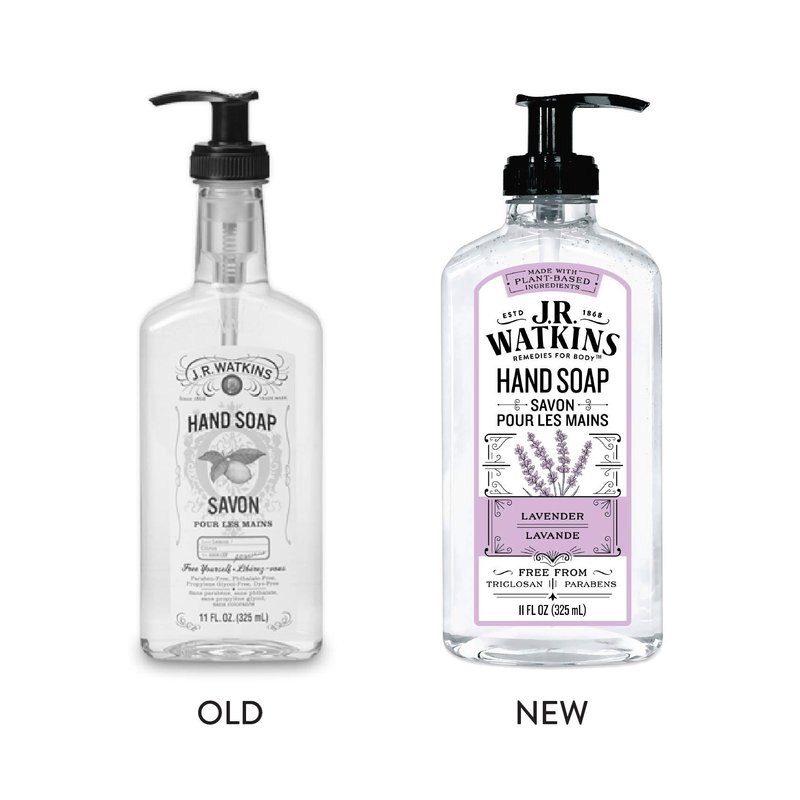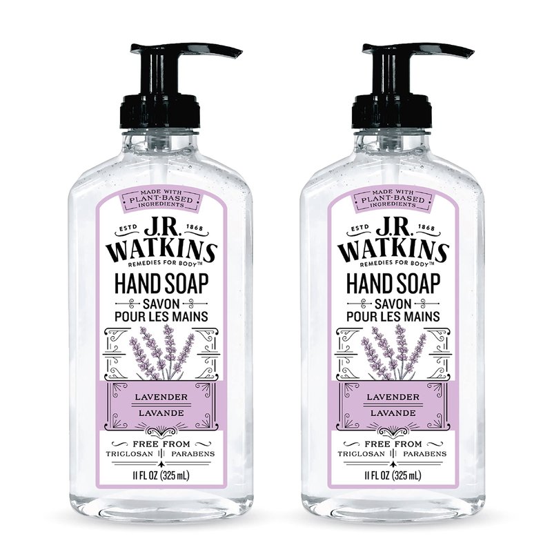 J.R. Watkins Lavender Scent Liquid Hand Soap 11 oz, Pack of 2, Packaging may vary. Formulated with natural ingredients, this hard-working soap is gentle on hands. Enjoy Watkins' premium fragrances and packaging as you create a soothing lather of suds. Rinse them away for exceptionally clean and smooth hands.