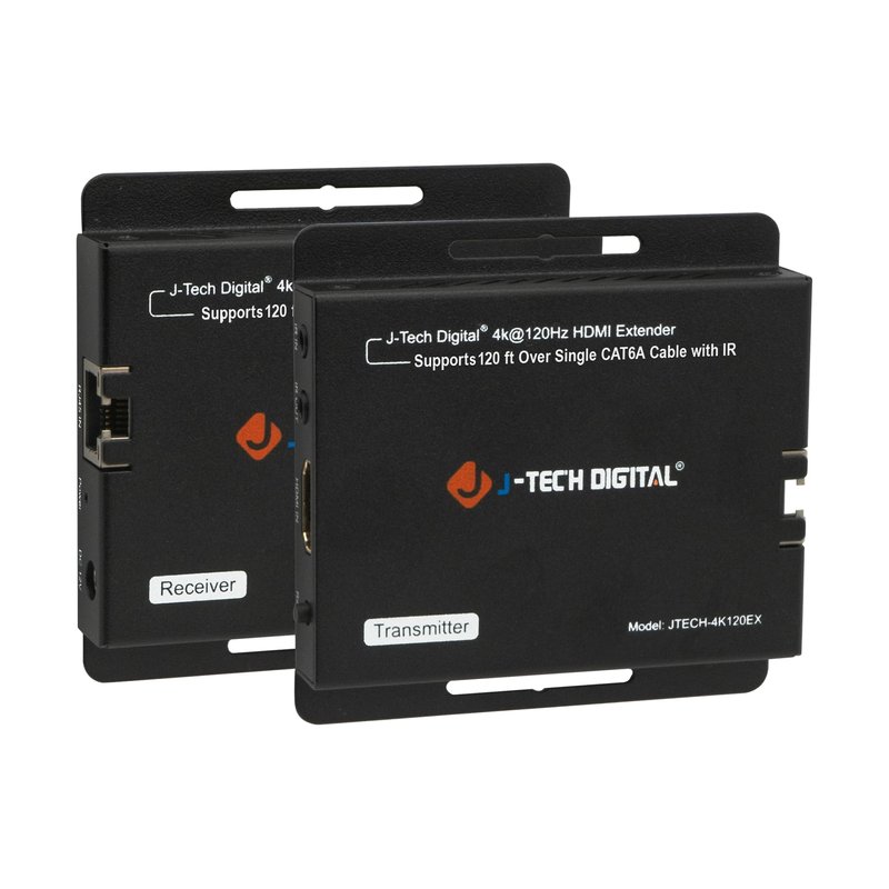 J-Tech Digital 4K 120Hz HDMI Ethernet Extender Over Single Cat6A/7 Ethernet Cable Up to 120ft., Supports Bi-Directional IR HDMI 2.0 HDCP 2.3 EDID Bypass Digital Audio Formats [JTECH-4K120EX]