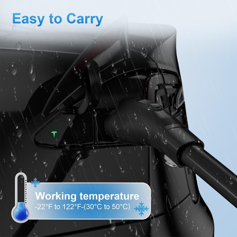 - 【Convenient and Quick】: You can connect this tesla charger to a home J1772 charging post to charge your Tesla or use it in public places where J1772 charging posts are available, such as shopping malls, supermarkets, car parks, and service areas.