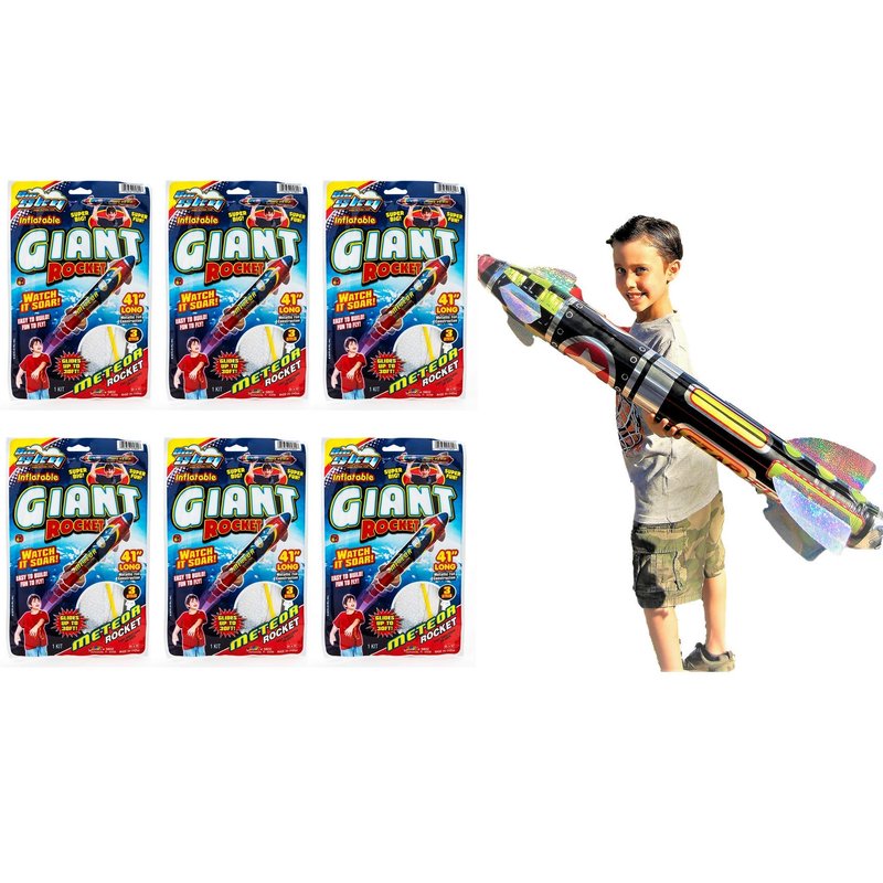 - 6 INDIVIDUAL PACK OF BIG SKY GIANT INFLATABLE ROCKET SHIP - Comes in random assorted metallic color and styles. Each giant inflatable rocket is 41 inch long. Just blow some air into the rocket to inflate it. Let it glide, float and soar into the sky. Great for toys, decor, and props for kids and adult. Plus 1 Collectable JA-RU bouncy ball.