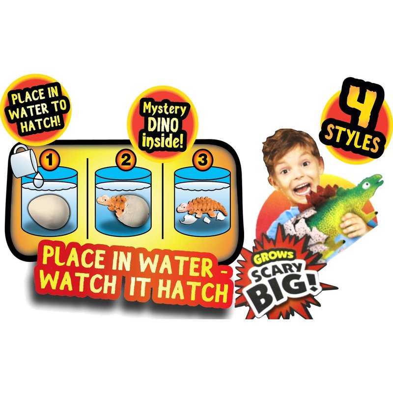 - 1 Unit of Extra Large Mega Magic Grow Dinosaur Hatching Egg Toy for Kids, Assorted Colors and Styles. Grow It and Discover What's Inside. 4 Styles of cool Dino Toys. Mystery Grow egg. Same Family as the JA-RU Dragon Hatching Egg. Plus 1 FunaTon Sticker.