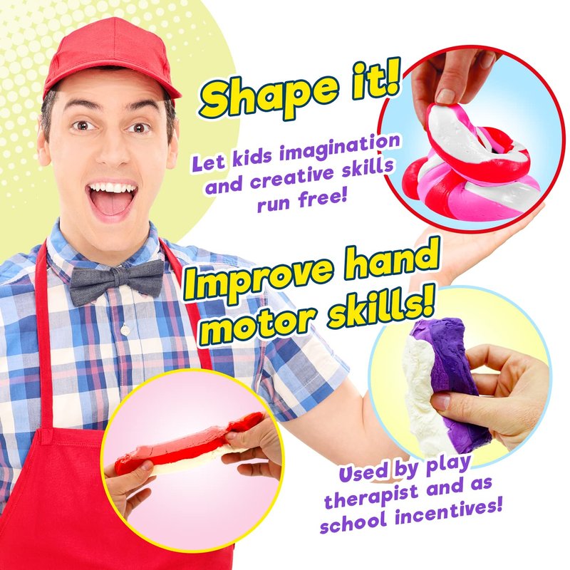 Ja-Ru's Yummmerz Putty Pop Ice Cream Putty is USA approved and complies with global toy safety standards (ASTM tested). Safe and non-toxic for your kids to play. Our Putty Slime inspires curiosity and sparks imagination in the young mind of children. Colorful styles (Pink, Brown, and Purple) and moldable to the extent of one's own imagination. Stretchable, sculptable, bounceable and fun for everyone! Great for stress relief and therapy office supplies.