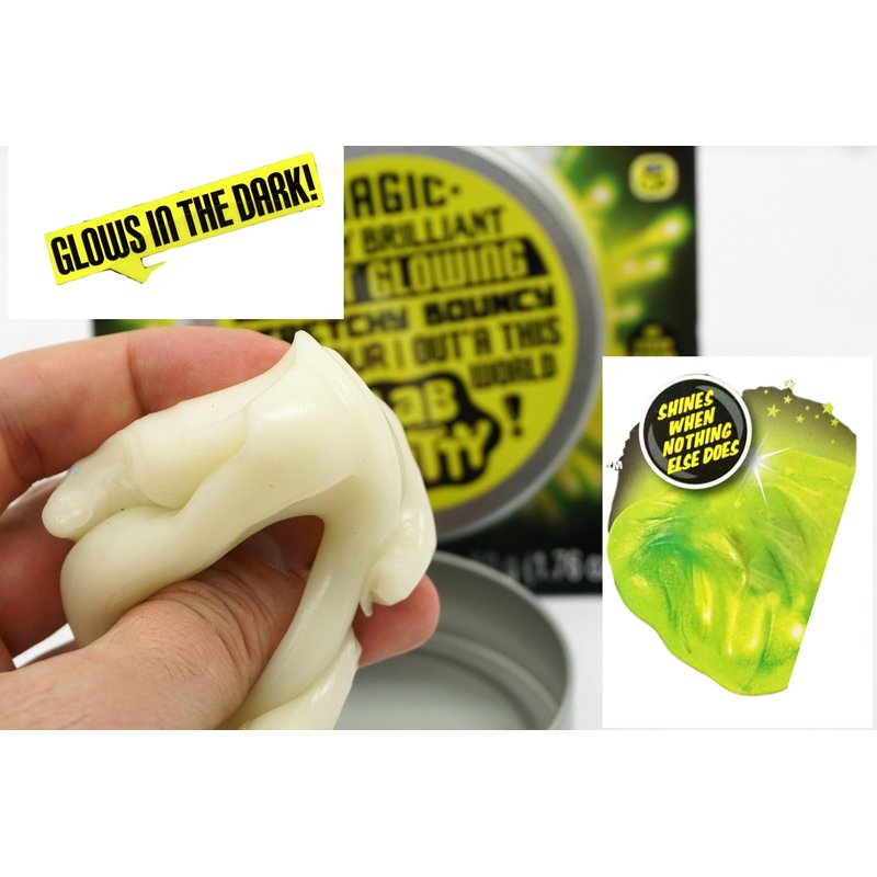 - 1 Pack of Lab Putty Glow in the Dark Putty - Each pack comes with a tin container. Put the slime under the light for few minutes and watch it glow in the dark. Cool slime for boys and girls. Plus 1 JA-RU Bouncy Ball.