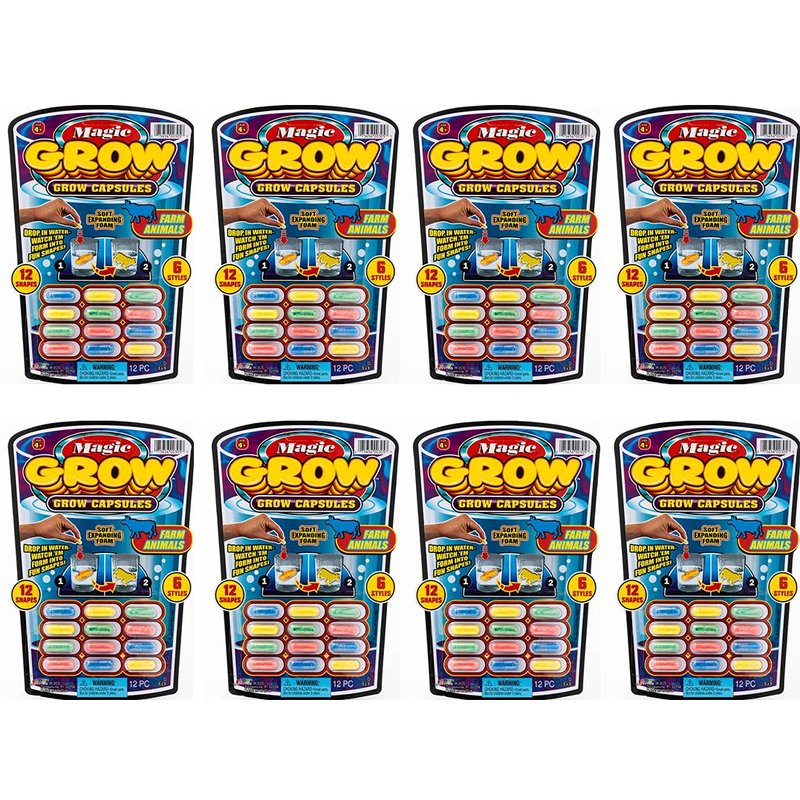 - 8 Packs 96 Capsules. 12 Magic Grow Capsules Each Pack. EXPANDABLE FOAM SEA CREATURES Fish, Animals and Dinosaurs Assorted PILLS: 12 capsules in Each Pack of various Colors & Shape. Plus 1 FunaTon Sticker.
