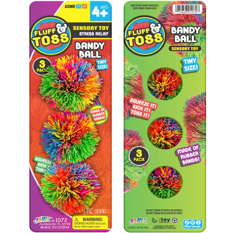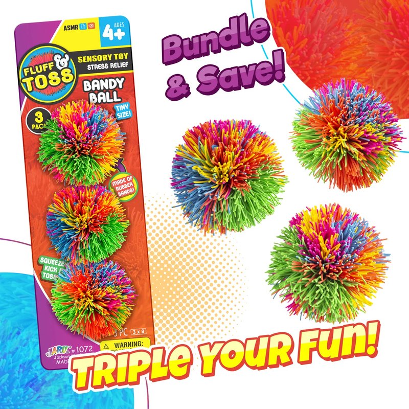 - 1 PACK OF 3 FIDGET BALL SOFT RUBBER BAND COLORFUL BANDY BALL (ASSORTED MIXED COLORS). Great Play with this Delicious Stretchy String Balls stringy balls are made of quality silicone, non-toxic and no latex, help to reduce stress and anxiety, safe for children and adults to play with. Like Koosh Balls.