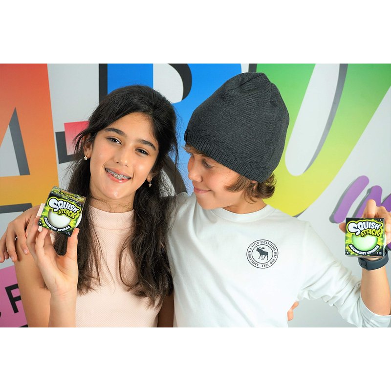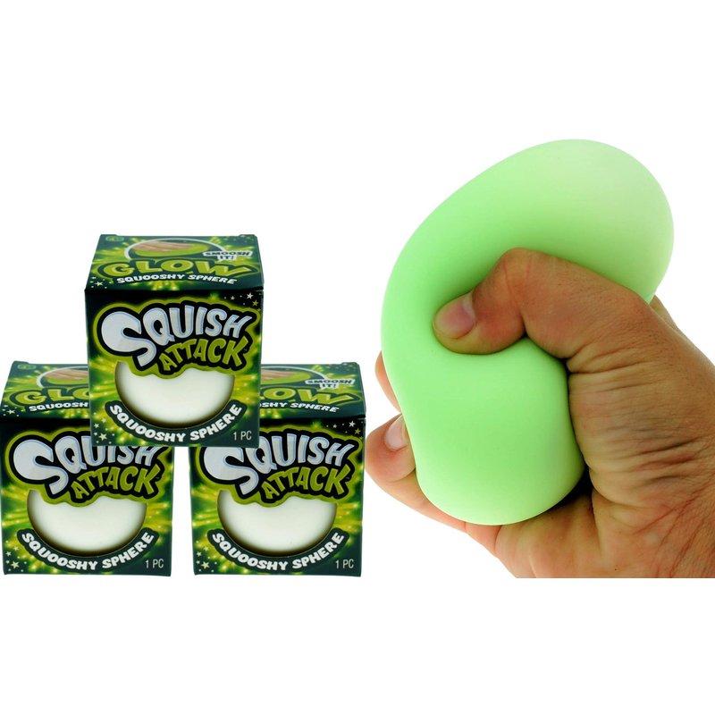 - 3 Pack of Squish Attack Glow in the Dark Ball - Super soft squishy stress balls for kids. 6 inch jumbo stretchy ball for you to squeeze & pinch. Cool anti stress toys. Plus 1 JA-RU bouncy ball.