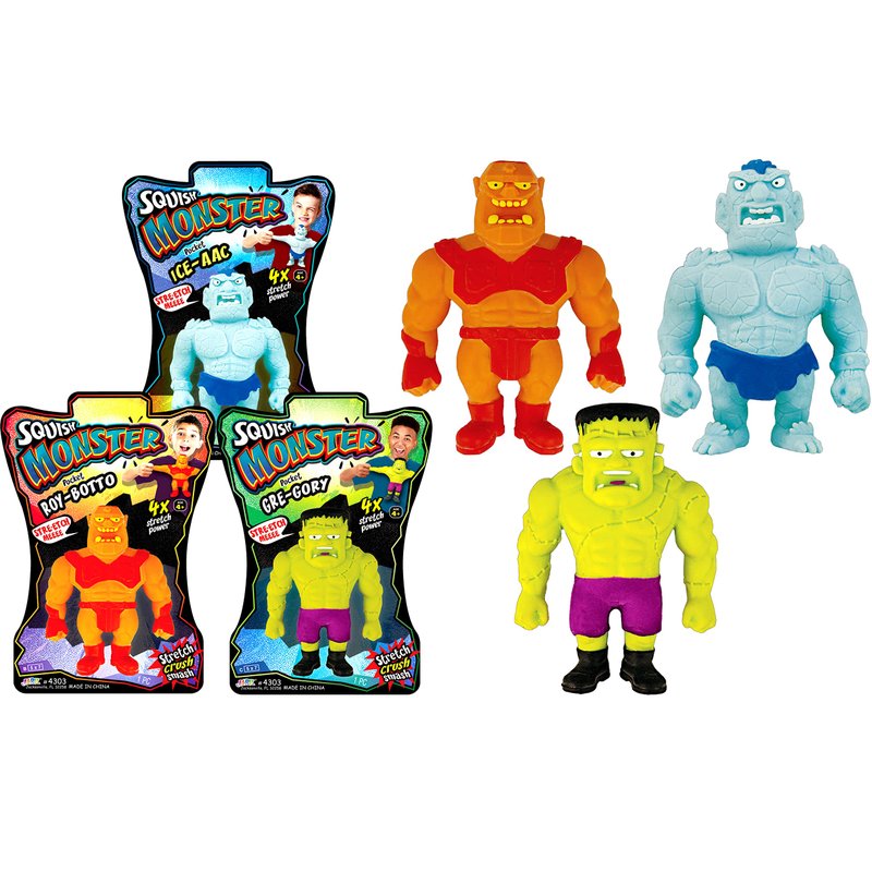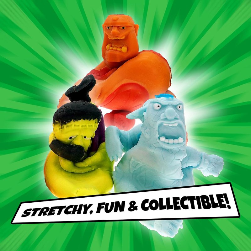- 3 Small 3.5" Monsters Assorted Of Stretchy Monsters Legends Action Figures. Superhero Toys . Stretchy Like Armstrong Pull Toy Action Figure Squishy Stretchy Stress Toy Assorted Styles and colors (Red, Green, Blue). Squishy Toys. Plus 1 FunaTon Sticker.