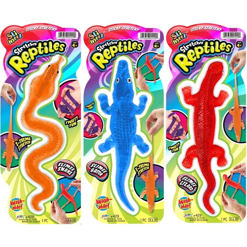 JA-RU Super Stretchy Sticky Reptiles Snake, Lizard & Alligator (3 Units Assorted) Prank Squishy Sticky Toy Party Favors Toy for Kids, Pinata Filler, Bulk Toys, Snap Hand Like Fidget Toy. 429-3A