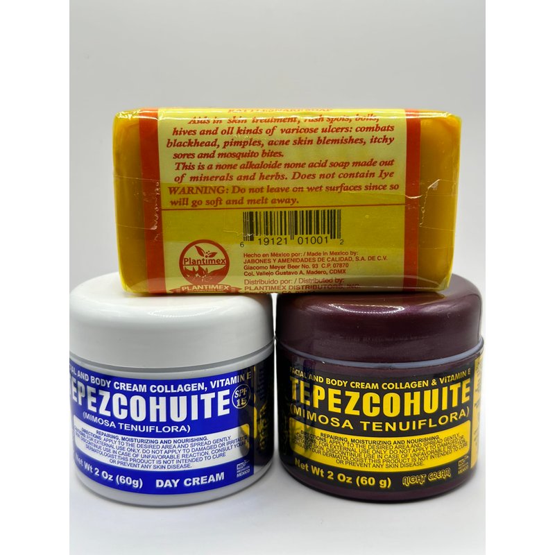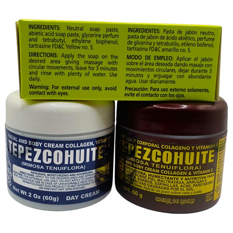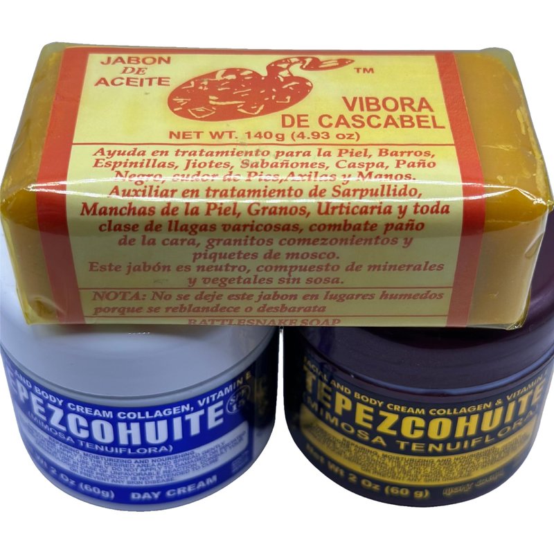 Jabon de aceite de vibora de cascabel (140g) jabon cara y cuerpo- Ayuda a eliminar el acne y paño/Rattlesnake soap (4.93)CREMA DIA 2oz + CREMA NOCHE 2oz (DAY CREAM +NIGHT CREAM 2oz ) TEPEZCOHUITE Cream Moisturizer Bundle - 2 oz Day and Night Cream for Face and Body - Hydrating and Nourishing Anti-Aging Creams for a Healthy Glow