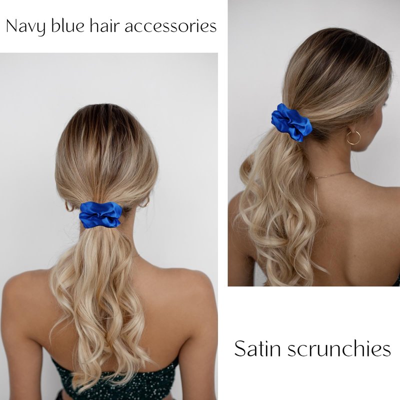 - Navy Blue Scrunchies: 12 satin hair scrunchies in navy blue, perfect for blue series lovers - Add a touch of elegance to your hairstyles.