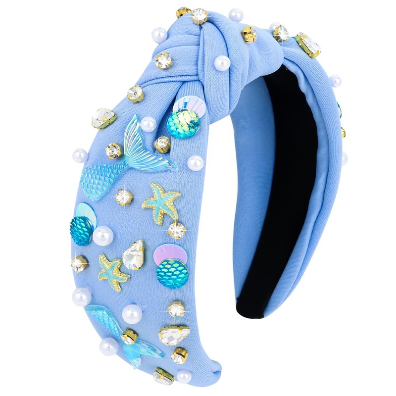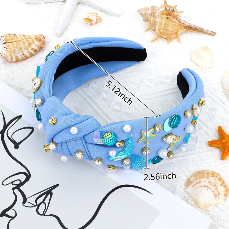 - Dazzling and Eye-Catching: Our mermaid knotted headband features a vivid mermaid tail and blue starfish with high quality pearls and rhinestones to add a touch of glamour to any outfit.