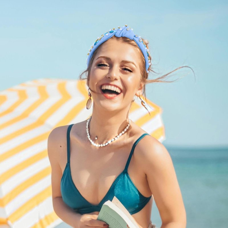 This exquisite mermaid tail, starfish, pearl and rhinestone embellished knotted headband comes in dreamy blue, representing passion, energy and vitality. We choose high quality ivory pearls and sparkling rhinestones to decorate the blue headband, shimmering and eye-catching. The blue color makes it suitable for any occasion and hairstyle. The wide designed to decorate your hairstyle without feeling compressed while highlighting your unique temperament. Pearl symbolizes elegance and rhinestone adds a touch of glittering glamour. Together they create an irresistible luxurious and dazzling look. This headband allows you to express your natural, fresh and lively spirit, making you the focal point with a chic style. Matching different outfits, it can transform into various gorgeous and stunning looks to bring your beauty into full play. We sincerely hope each subtle detail and comfort of this blue knotted headband can bring you joy and surprise. Your happiness is our motivation to keep improving. Let's appreciate the beauty of life together! Choose us to choose your unique charm and gorgeousness. Thank you for your recognition and support.
