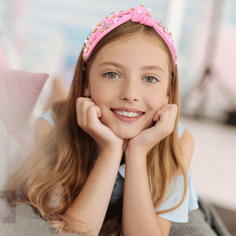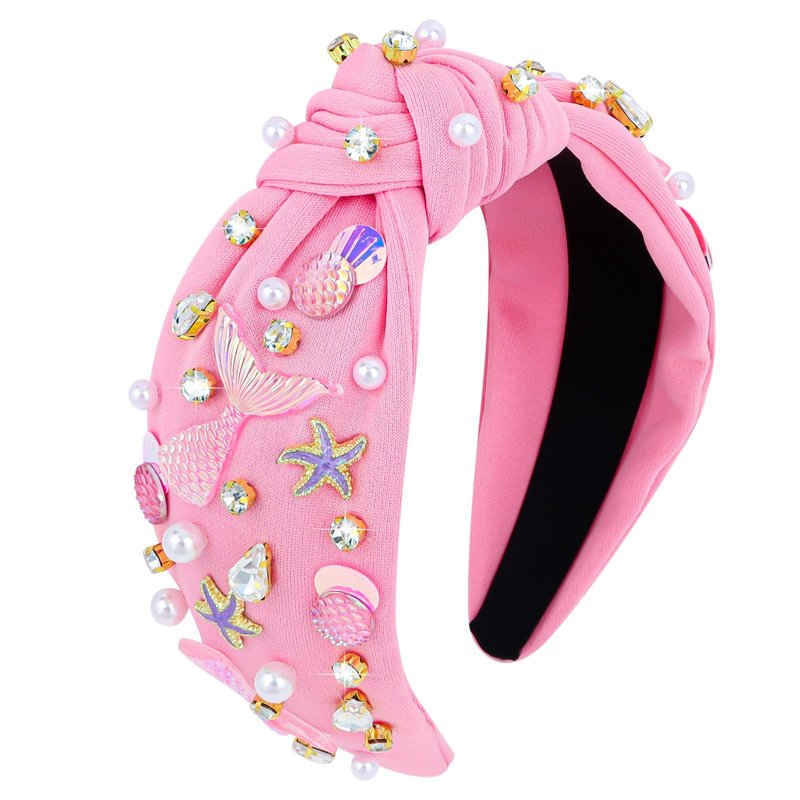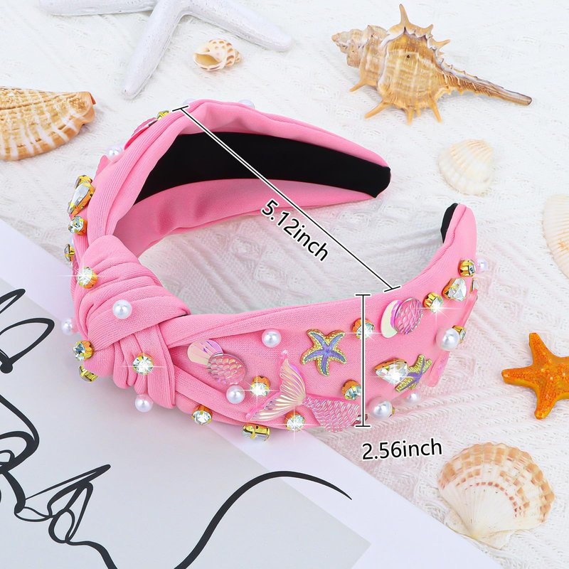 Jaciya Pearl Headband for Girls Rhinestone Headband for Women Wide Knotted Pink Headband for Women Starfish Head Band Mermaid Birthday Party Decorations