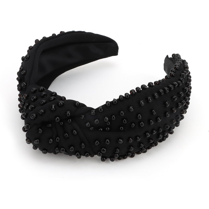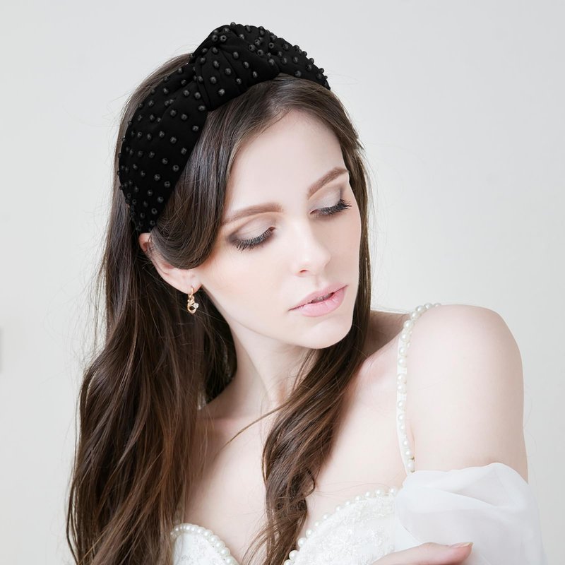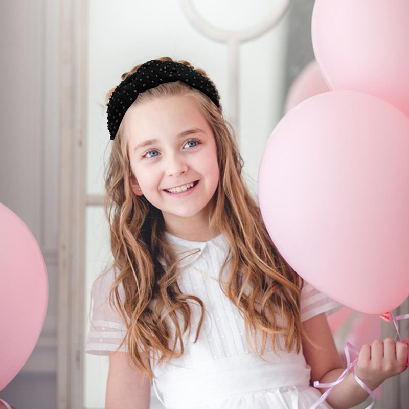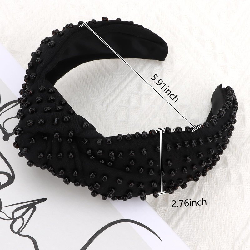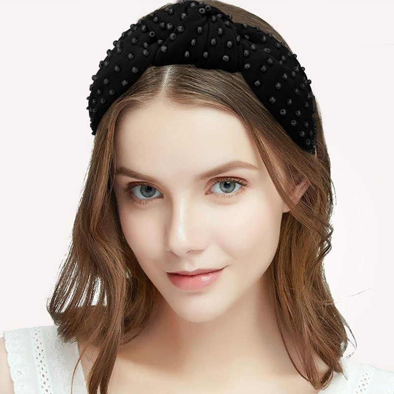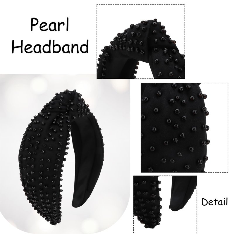 Jaciya Pearl Headband for Girls Wide Knotted Headband for Women Beaded Black Headband Knot Turban Hair Accessories