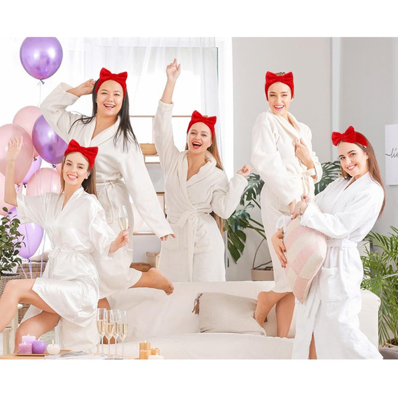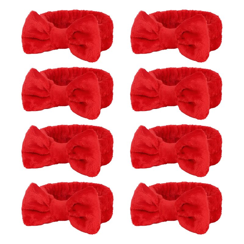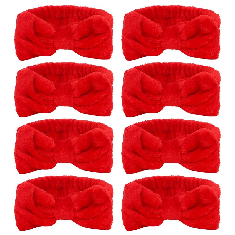 Complete Your Spa Party Decor This deluxe set includes 8 red spa headbands, providing a complete solution for your special day skincare routine. Perfect gift for bride and bridesmaid. They'll love receiving these cute accessories as part of their bridesmaid proposal or at the bachelorette party. The soft and stretchy coral velvet headbands are designed to keep your hair neatly pulled back and away from the face during face wash, masks, makeup application or other skincare treatments. Exquisitely made with advanced sewing technology, the headbands are perfectly tailored into comfortable circles. The all-in-one skincare set is a perfect gift for women who love makeup and spa. Pamper yourself or share the joy of skincare with friends and family. This deluxe spa gift set will be appreciated by all beauty lovers. Transform your skincare regimen into a daily indulgence with this must-have beauty tools set. Get salon quality results and experience in the comfort of your own home. Be flawless and fabulous! The stitching is flat, firm and smooth, ensuring durability and long term use. Made of high quality coral velvet, the headbands are very comfortable to wear and gentle on skin. They fold into a compact size for easy storage in your vanity case or travel bag.