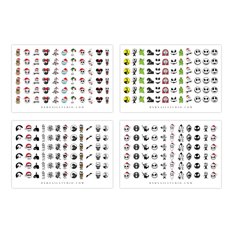 Jack Skellingtons Nightmare Before Christmas Nail Decals 4 Sheet Set Salon Quality Water Transfer Nail Art