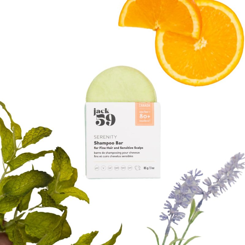 Jack59 Solid Shampoo Bar for Fine Hair & Sensitive Skin Organic Shampoo with Bergamot and Grapefruit, All Natural Shampoo, Travel Shampoo, pH Balanced, Gluten Free, Vegan Sulphate-Free, Serenity 3 oz