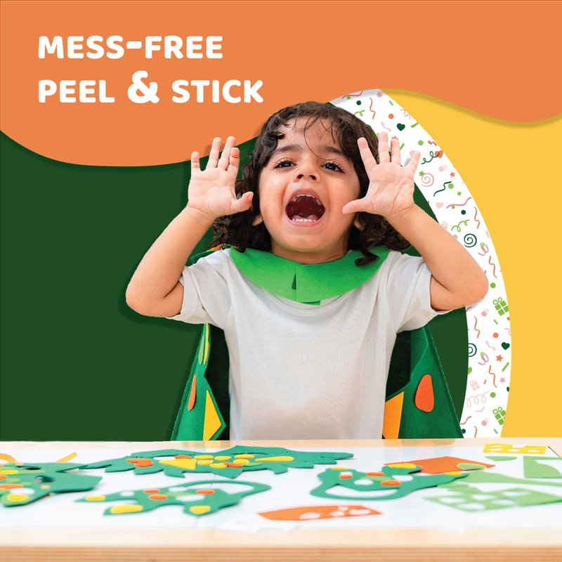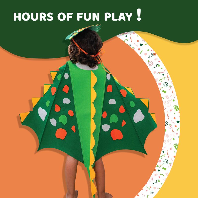 - Dinosaur costume kit - This kit is made from baby skin friendly material, high quality thick felt fabric. This Dino arts and crafts kit includes a cape, mask and feet covers.