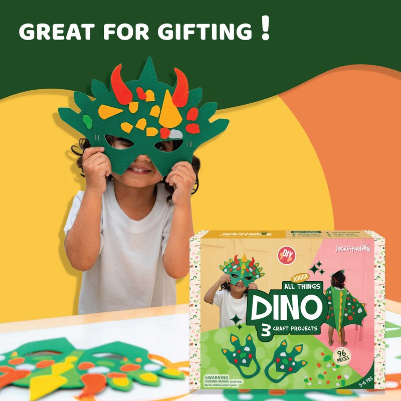 jackinthebox Dinosaur Toys for Kids 3-5, 3-in-1 Dino Dress-Up Kit, Arts and Crafts for Boys and Girls, Dinosaur Costume, Great Gift for Kids Ages 3 4 5, No Mess Craft Kit for Kids, DIY Activity..