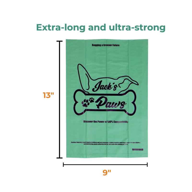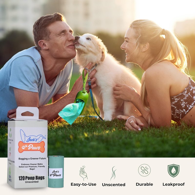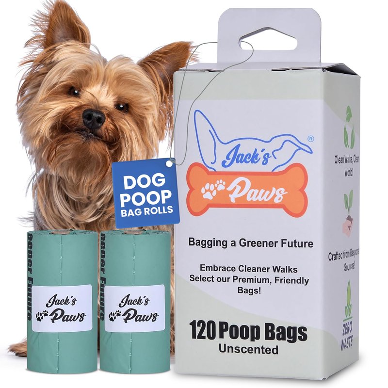 Presenting Jack's Paws Premium 5-Pound Dog Waste Bags – Pack of 120. At Jack's Paws, we understand the needs of the modern pet owner. We believe that caring for your furry friend should be synonymous with caring for our planet. With this ethos at the heart of our brand, we've meticulously developed our 5-pound dog poop bags to offer a blend of practicality, sustainability, and responsibility. Our pack of 120 ensures you're not just adequately stocked but also prepared for any outing, whether it's a short stroll around the block or an adventurous day at the park. We've all been caught off guard without a bag in hand, but with Jack’s Paws, you have one less thing to worry about. Each bag is generous in size, catering to both small puppies and larger breeds. Their unscented nature ensures that you handle waste without being overwhelmed by artificial fragrances. Designed with ease of use in mind, our bags provide a seamless experience from the moment you pull one out to when you tie it up for disposal. But it's not just about convenience. In an age where nature consciousness is paramount, our bags appeal to people who want to make ethical, sustainable decisions. Crafted with an unwavering commitment to sustainability, choosing Jack's Paws is not just a choice for top-notch quality but also a nod to nature stewardship.In sum, Jack's Paws 5-Pound dog poop bags aren't just another product; they are an embodiment of responsible pet ownership. By selecting our brand, you're not only investing in a premium waste management solution but also aligning yourself with a movement that prioritizes our planet's well-being. Step up your pet care game and make a statement about your commitment to nature. Choose Jack's Paws – where quality meets responsibility.