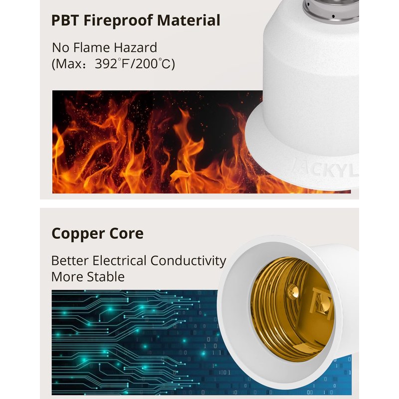 - 【Better Electrical Conductivity】 - This light bulb socket adapter comes with copper contact inside, more stable and efficient than the normal aluminum core, no flame hazard or electric shock. Ensure your electricity safety.