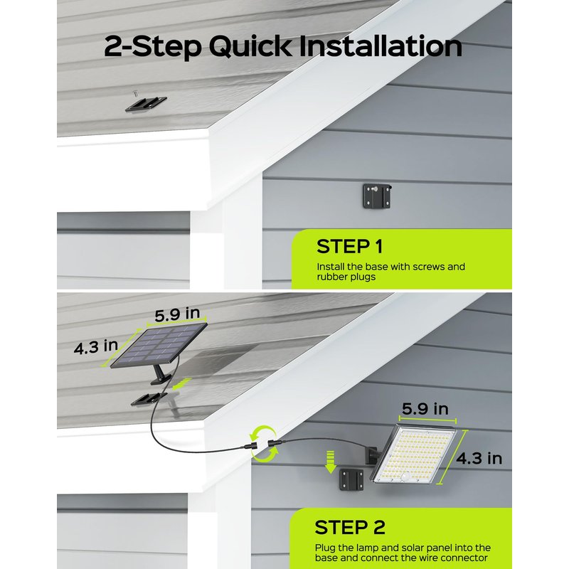 - [ Separate & Easy Installation ] - The solar panel and light panel can be installed in different places where they are most useful, connected by a 16.4 ft cable. The waterproof solar motion sensor light comes with all screws and anchors for easy installation on walls, eaves, poles and other outdoor/indoor places even in rainy, snowy weather.