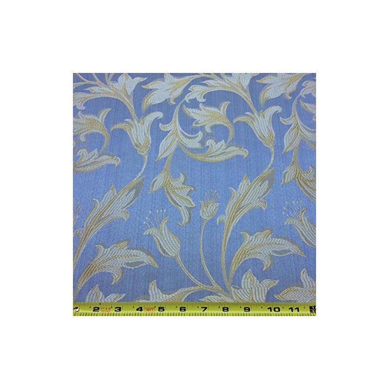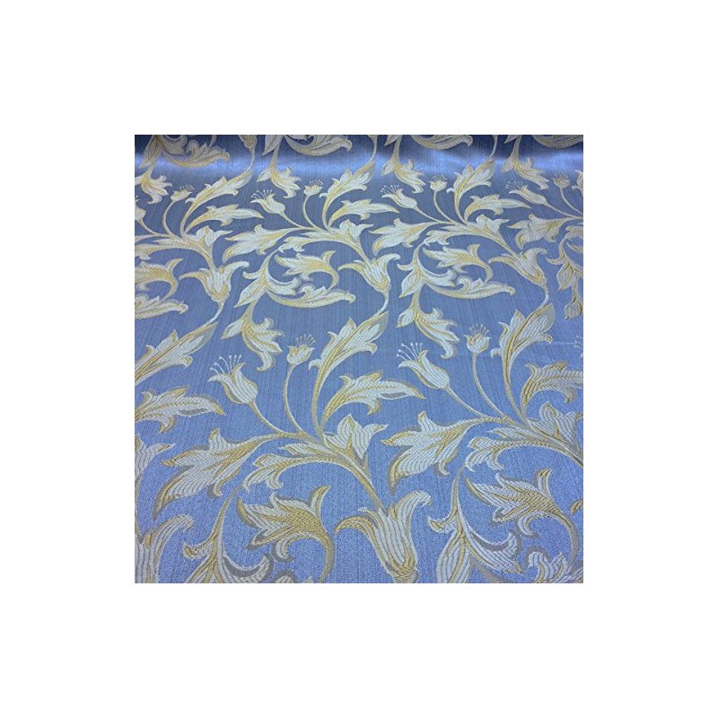 Jacquard Damask Bloom Brocade Fabric 118'' Wide (Baby Blue/Gold)