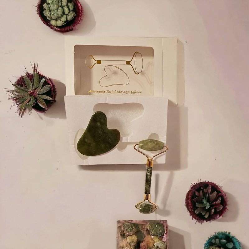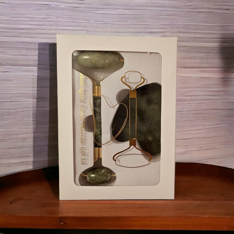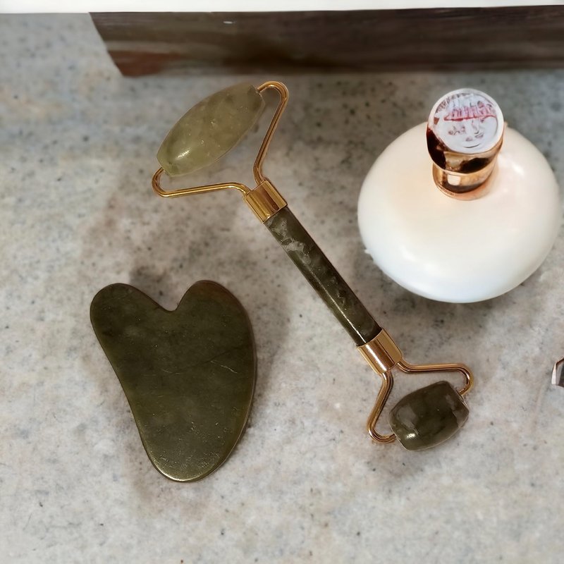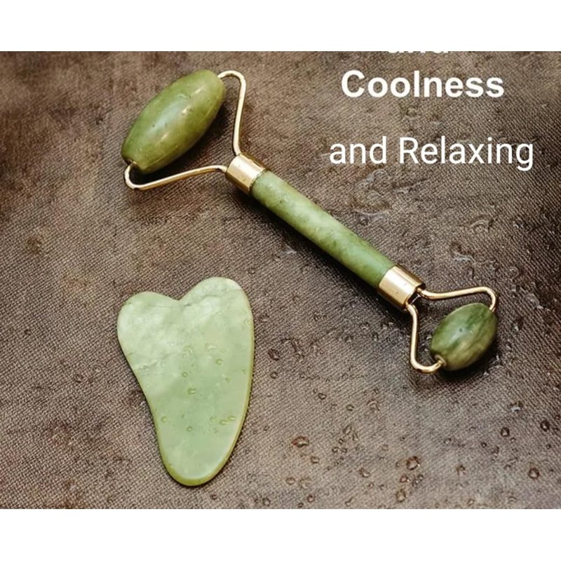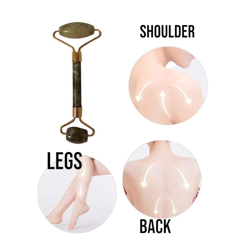 Natural green Jade roller for face, neck and body. It is a massage tool to help reduce inflammation and swelling. Made from the jade stone. Place in the refrigerator and roll on the face to help sooth inflammation and dark circles under eyes. Best used with serums on the face to blend in the skin.