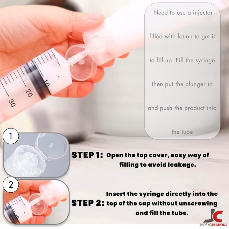 - Notice: you need use a injector filled with lotion to get it to fill up. Fill the syringe then put the plunger in and push the product into the tube