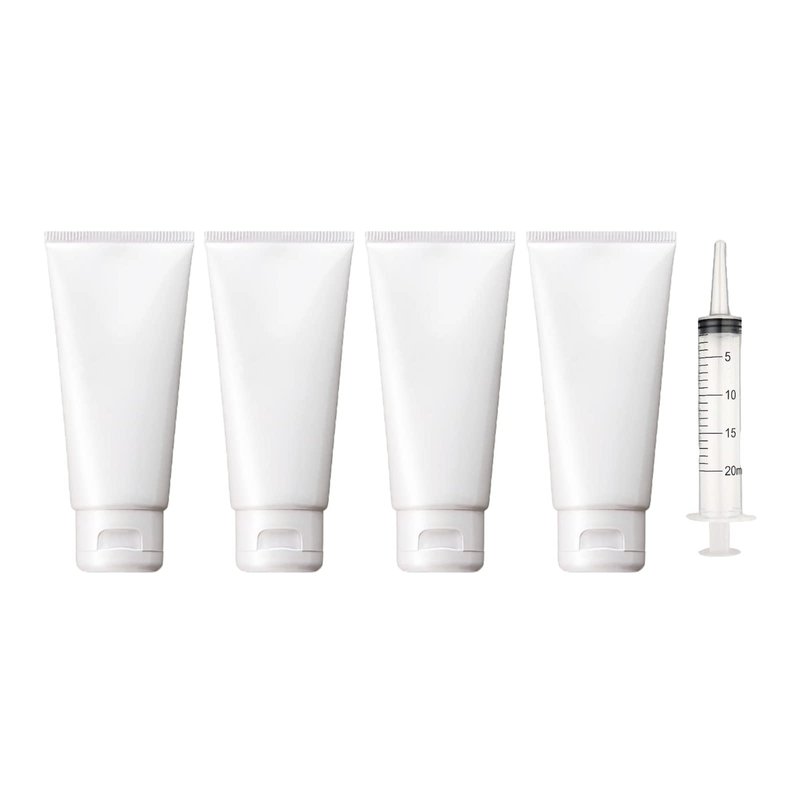 Jadsy Creations - (4pcs per pack) 200ml WHITE Empty Cosmetic Tubes with free Syringe Soft Tubes Container Bottle Vial Jar with Flip Cap Storage for Shower Gel Body Lotion Cleanser Shampoo 200ml WHITE
