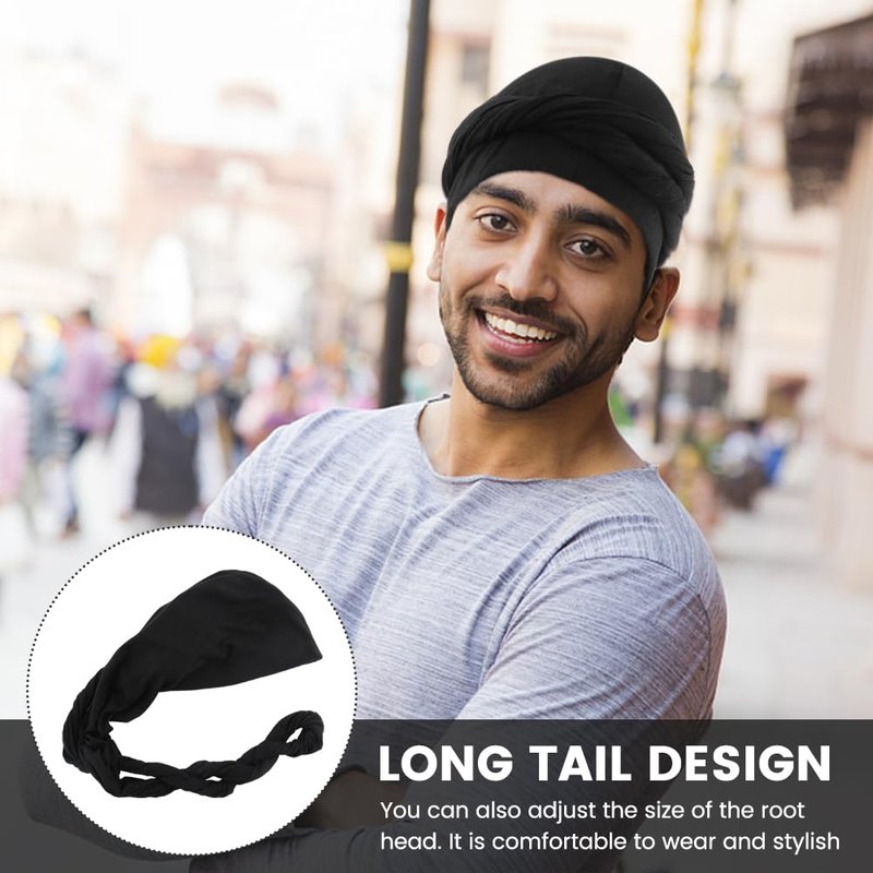 Jaeskeclip Turban Durag Men,Modal for Men Elastic Head Wrap,Black Stylish Breathable Turban Pre Tied for Dating, Running, Climbing, and Playing Ball(size:M)