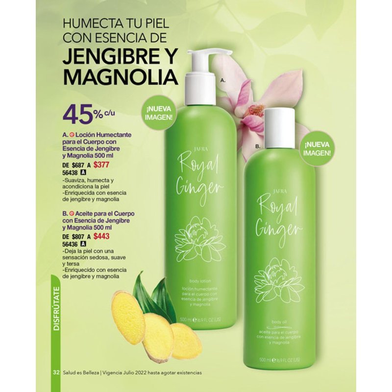 A rich moisturizing lotion and oil with the invigorating scent of Ginger accented with Magnolias. Leaves skin feeling soft and smooth for hours.