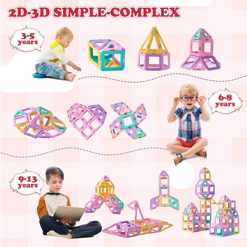- Preschool Creative Educational Stem Toy: For toddlers, they can recognize colors and shapes through magnetic tiles, sort magnetic tiles by color or shape, and As Children Grow Up, kids can progress from building simple geometric shapes to complex buildings. Magnetic tiles help develop kids brain and improve them fine motor skills, imagination, creativity and spatial thinking. while learning how to problem-solve and work as a part of a team.