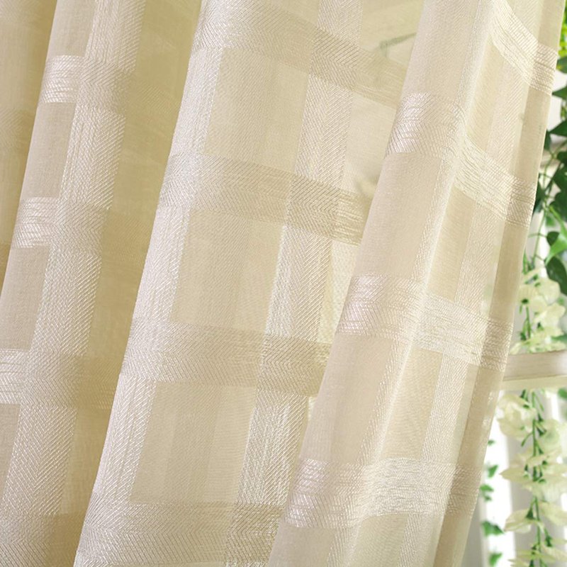 JAIJY 78" Volie Semi Screen 2Pc Tulle Backdrop Curtains Buffalo Check Striped Gingham Sheer Linen Fabric Window Curtain Panel Decorative Grommet Top Bedroom Drapes, 2 Panels, 78 inch Length, Beige