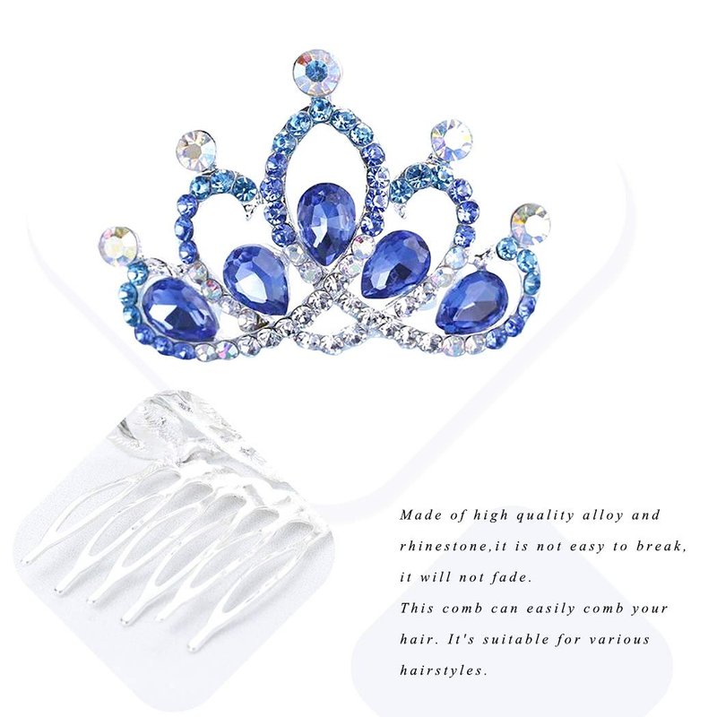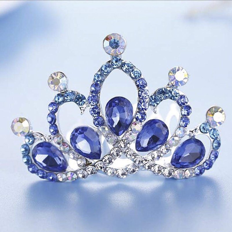 JAKAWIN Flower Girl Headpiece Wedding Hair Comb Rhinestone Tiara Crown Birthday Gift for Girls (Blue)