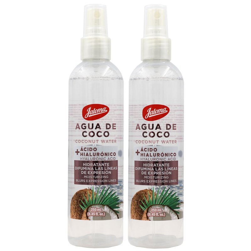 JALOMA Agua de Coco, Coconut Water with Hyaluronic Acid, Moisturizing Blurs Expression Lines, 2 Pack, 8.45 Fl Oz Each Bottle