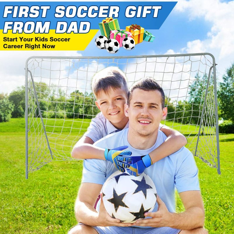 Jalunth Goalkeeper Goalie Soccer Gloves Kids Youth Goal Keeper Field Player Glove Boys Girls Ages 4-6 Years Old Anti-Slip Latex Palm Soft Pu Hand Back Blue Size 5