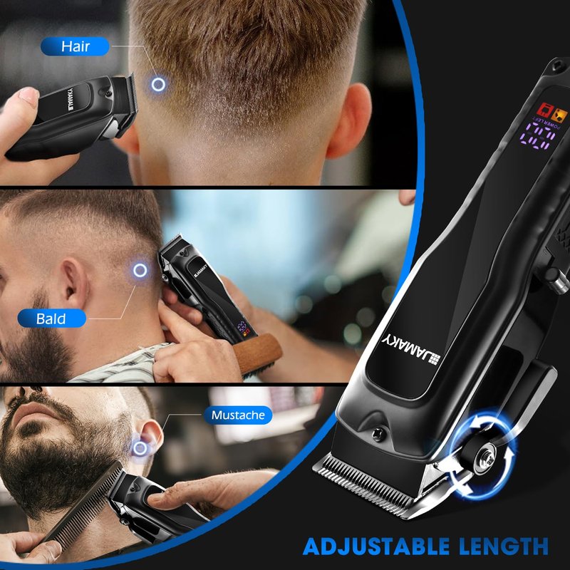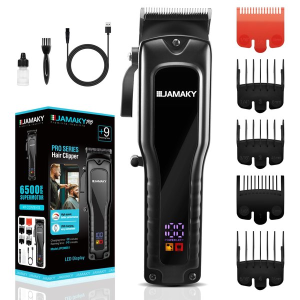 - 【Complete Hair Cutting Kit】 This all-in-one hair clipping set is complemented with essential accessories including oil, brush, dust cover, and a USB cable, making maintenance effortless. Whether for personal use or professional barber settings, JAMAKY's cordless hair clipper delivers on both performance and convenience, making every hair cutting session seamless and precise.
