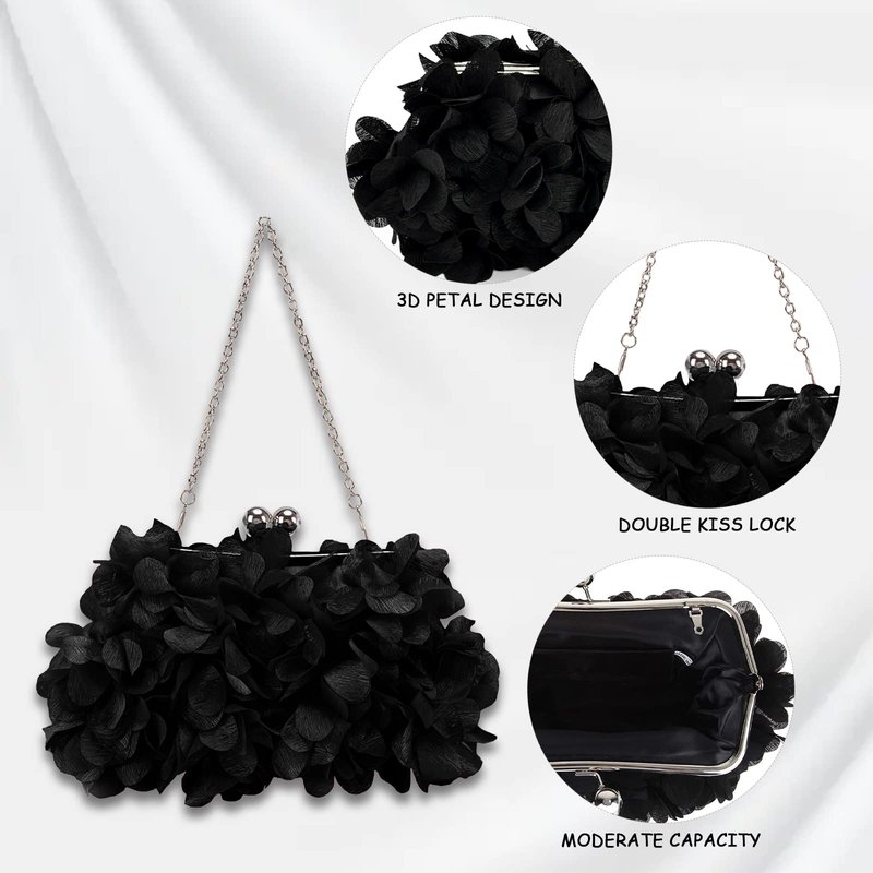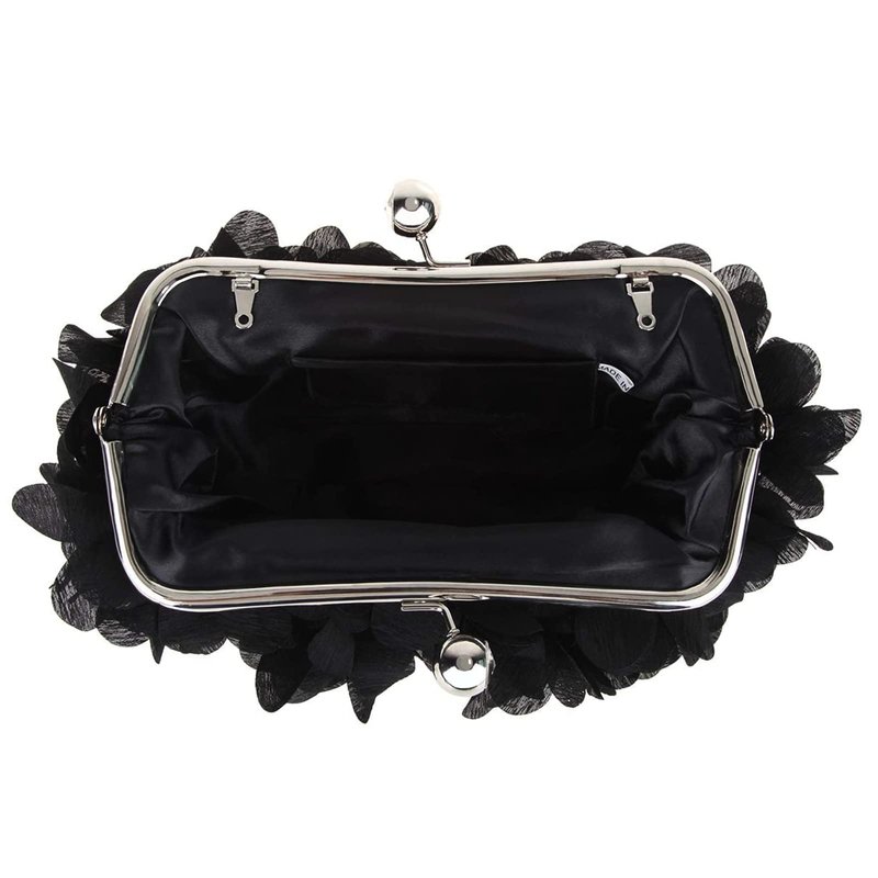 JAMBHALA Women Clutch Evening Bag Small Floral Purses with Chain for Wedding, Party, Prom,Black