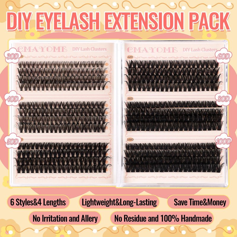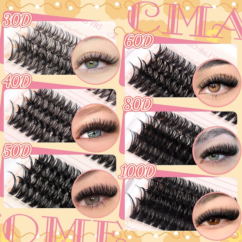 Lash Clusters kit,480 PCS lash Extension Kit 30D 40D 50D 60D 80D 100D DIY Individual Eyelash Clusters Kit,10-16mm Wispy Eyelashes Kit with Lash Bond, Lash Remover, Lash Applicator,Lash Brush