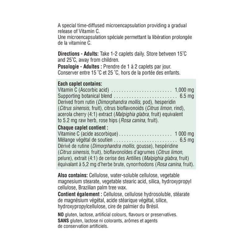 Jamieson Vitamin C 1,000 mg Timed Release is a unique micro-encapsulation formula that provides the gradual release of Vitamin C over time. It is an antioxidant for the maintenance of good health. Antioxidant source for the maintenance of good health Balanced release of vitamin C over time Timed release formula ensures extended delivery for efficient absorption Antioxidant source for the maintenance of good health Vegetarian Gluten-free