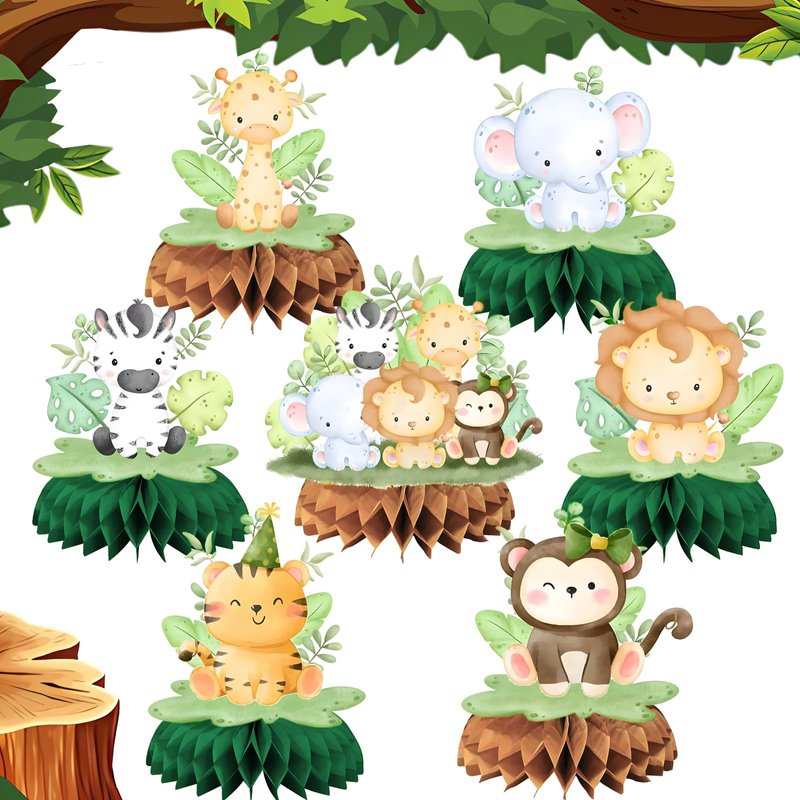 - Safari baby shower decorations designed in honeycomb shape which looks funny and adorable are nice for festivals, creative table decorations, as photo decoration props, children's party, baby shower, animal party and birthday party